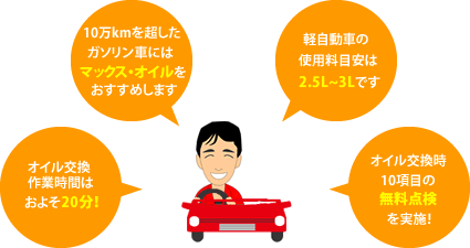 オイルにはお得な価格のオイル(※軽で2. 5リットル~3リットル使用)から 「プロの選んだオイル・ザーレンオイル」をご用意しております。お好きなものを選んで下さい。女性お一人や、初めて御来店の方には、どのオイルが御希望に合うかお声をかけさせていただいてますのでご安心下さい。